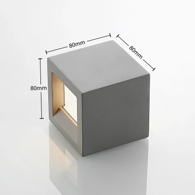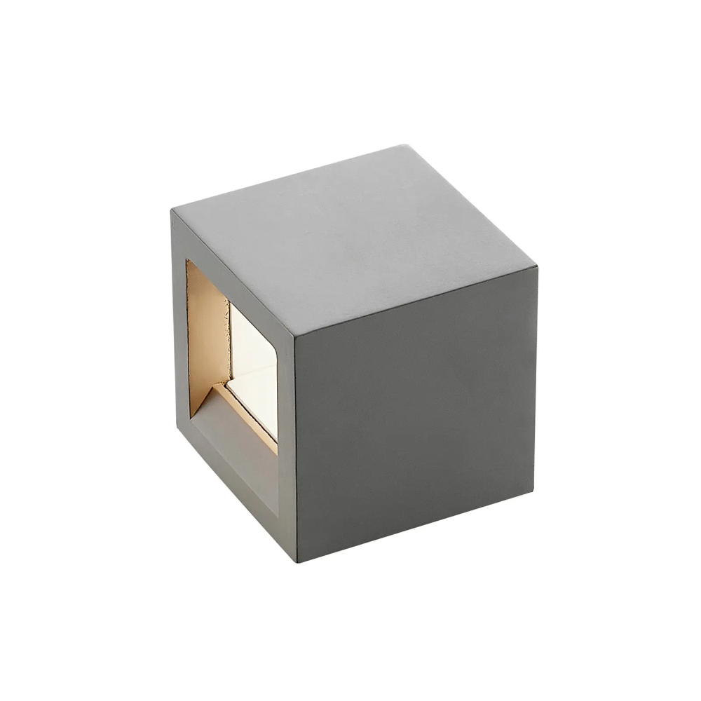 Небольшой светодиодный настенный светильник Quaso в форме куба был изготовлен из модного материала - бетона и оставлен в естественном сером цвете бетона.