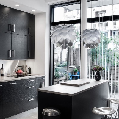 Абажур с множеством возможностей. Его можно использовать в качестве потолочного, настольного и напольного светильника, если у вас есть на что его закрепить.