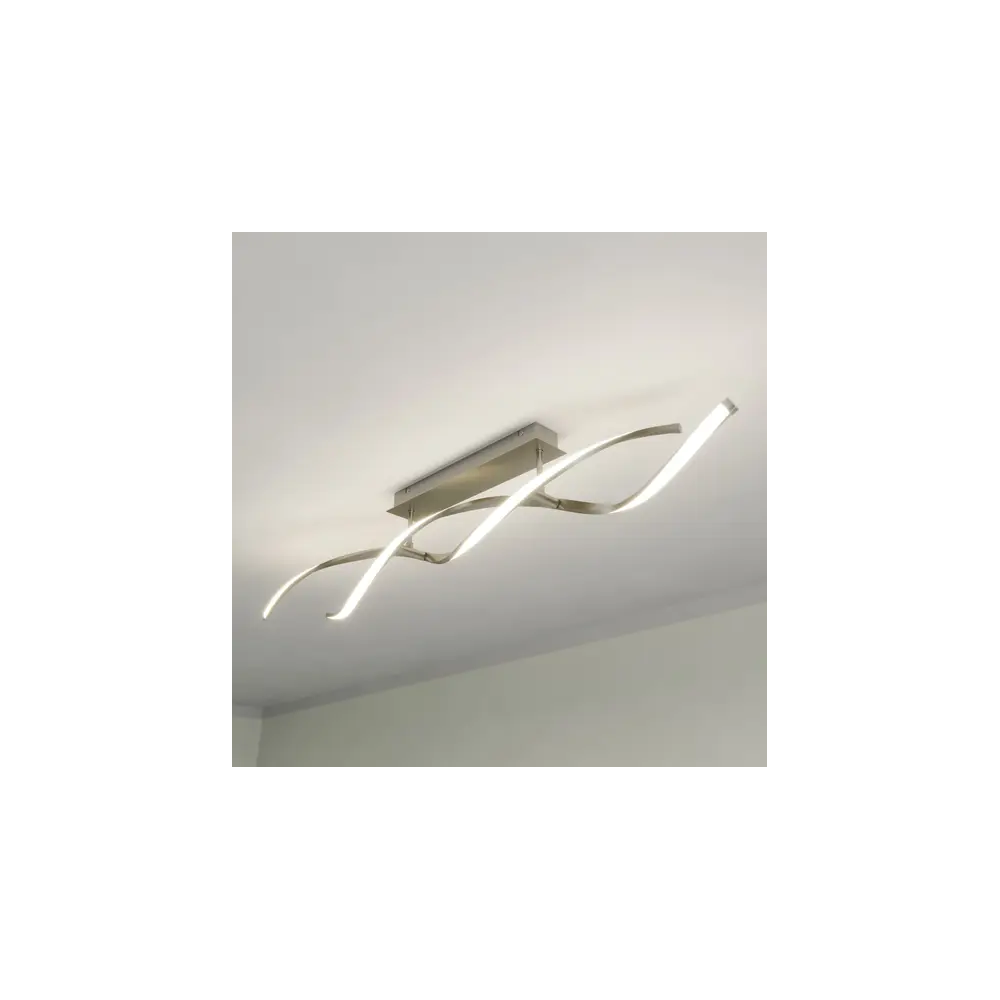 Kati отлично впишется в современный интерьер благодаря лаконичному металлическому дизайну с отделкой из сатинированного никеля. Два элемента светильника переплетаются в виде спирали и покрыты белыми элементами из поликарбоната, которые обеспечивают более равномерное распределение света.